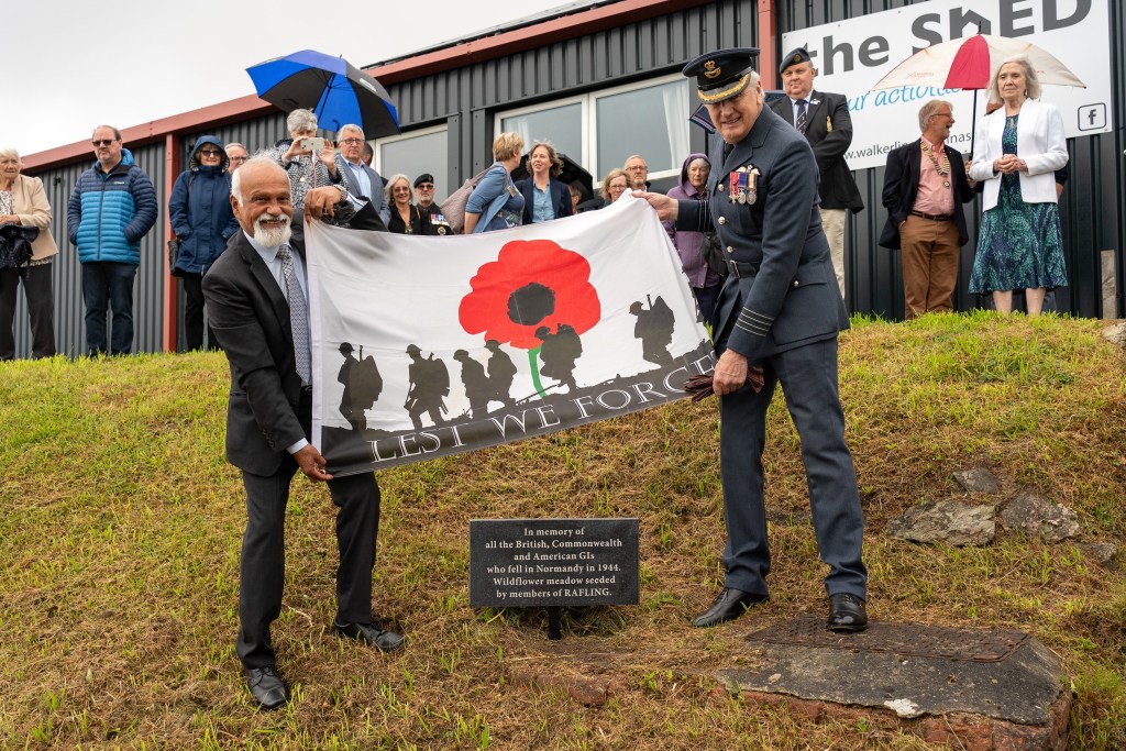 In the second ceremony Group Captain Mike Trace, Deputy Lieutenant of Cornwall, unveiled a tablet donated by Drew’s Memorials in honour of all those who fell in the battle for Normandy in World War II. A wild flower garden was then inaugurated along the front of the building with a prayer from Paul Holley, vicar of St Petroc’s church, and guests took turns to sow seeds in the garden while Matthew Harrison played John Williams’ Hymn to the fallen.